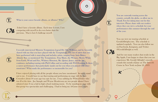 And for our many readers that reside in the Big Apple , I am happy to share that you can experience Mr . Gerald Albright ’ s smooth sounds this month of June on The Smooth Cruise in New York on June 22 , 2023 . o many stand the Jazz Felder who hom I have on stage with very night .