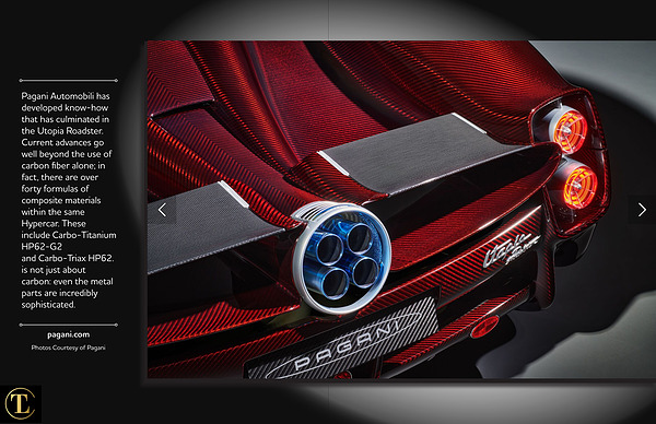 Pagani Automobili has developed know-how that has culminated in the Utopia Roadster. Current advances go well beyond the use of carbon fiber alone; in fact, there are over forty formulas of composite materials within the same Hypercar. These include Carbo-Titanium HP62-G2 and Carbo-Triax HP62. is not just about carbon: even the metal parts are incredibly sophisticated.