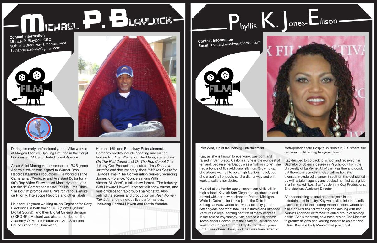 Contact Information Michael P . Blaylock , CEO . 16th and Broadway Entertainment 16thandbroadway @ gmail . com