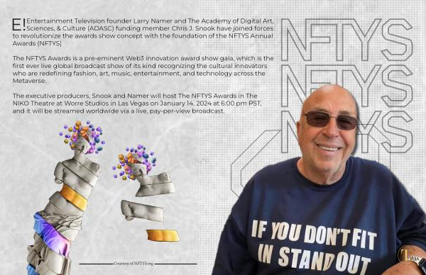 The executive producers , Snook and Namer will host The NFTYS NIKO Theatre at Worre Studios in Las Vegas on January 14 , 2024 and it will be streamed worldwide via a live , pay-per-view broadc